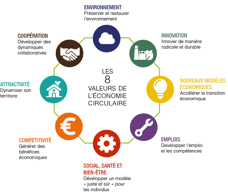 La transition vers un nouveau modèle économique plus circulaire (éco-conception, économie de la fonctionnalité et de la coopération, écologie industrielle et territoriale) est une démarche indispensable pour répondre aux défis environnementaux actuels.